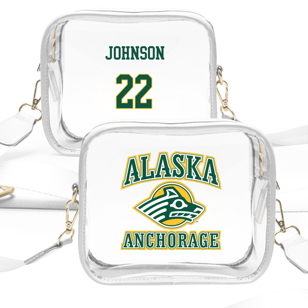 University of Alaska Anchorage Basketball (M) White Clear Stadium Bag - #22 Cole Johnson