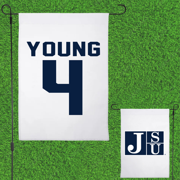 Jackson State University Basketball White Garden Flag - #4 Coltie Young