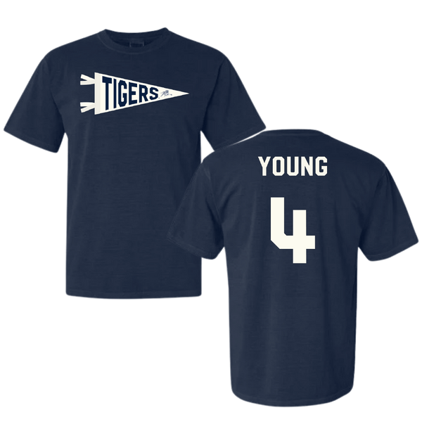 Jackson State University Basketball Navy Pennant Comfort Colors Tee - #4 Coltie Young