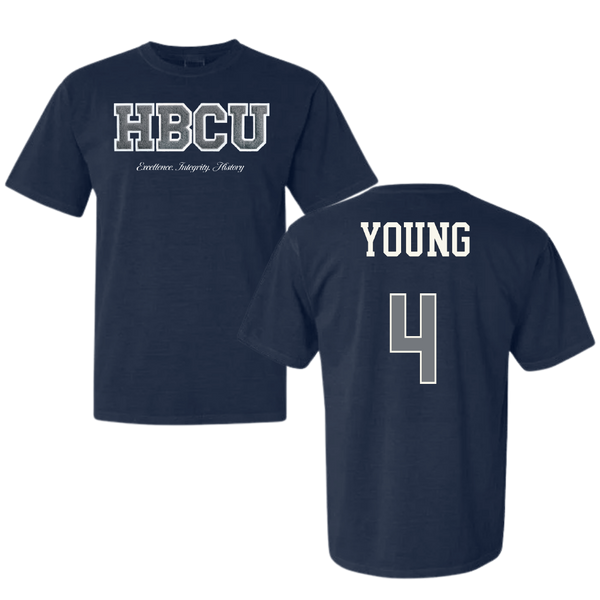 Jackson State University Basketball (M) Navy HBCU Varsity Comfort Colors Tee - #4 Coltie Young