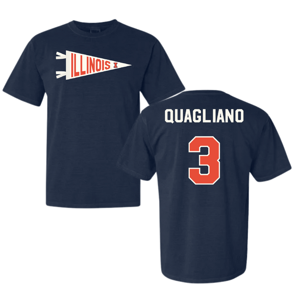 University of Illinois Baseball Navy Pennant Comfort Colors Tee - #3 Coltin Quagliano