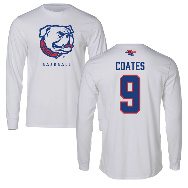 Louisiana Tech University Baseball White Long Sleeve - #9 Colton Coates