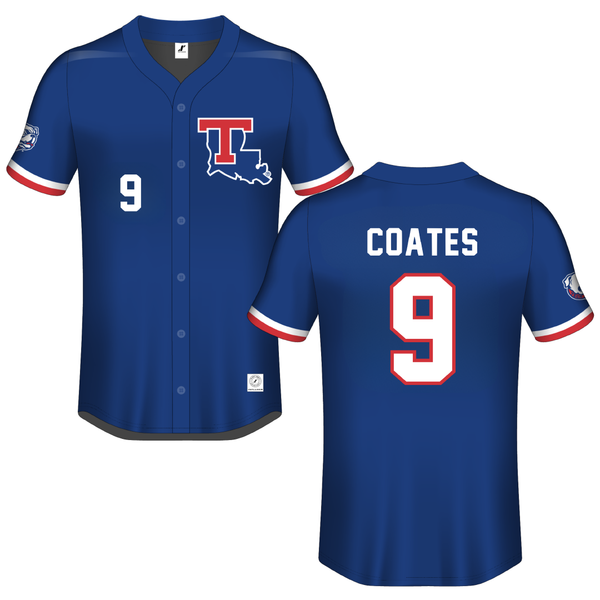 Louisiana Tech University Blue Button-Down Jersey - #9 Colton Coates