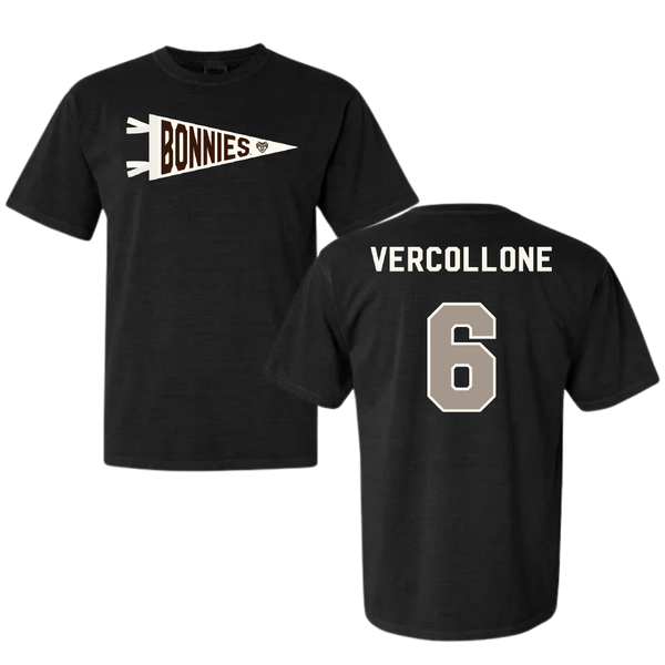 St. Bonaventure University Baseball Black Pennant Comfort Colors Tee - #6 Conner Vercollone