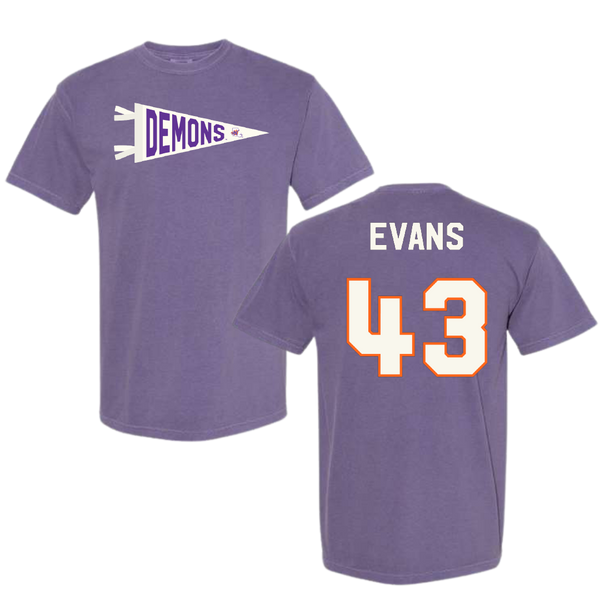 Northwestern State University Football Purple Pennant Comfort Colors Tee - #43 Cooper Evans