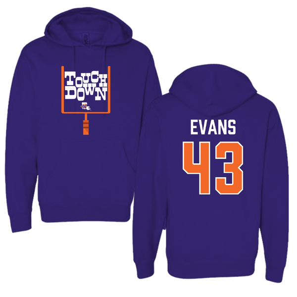 Northwestern State University Football Purple Touchdown Hoodie - #43 Cooper Evans