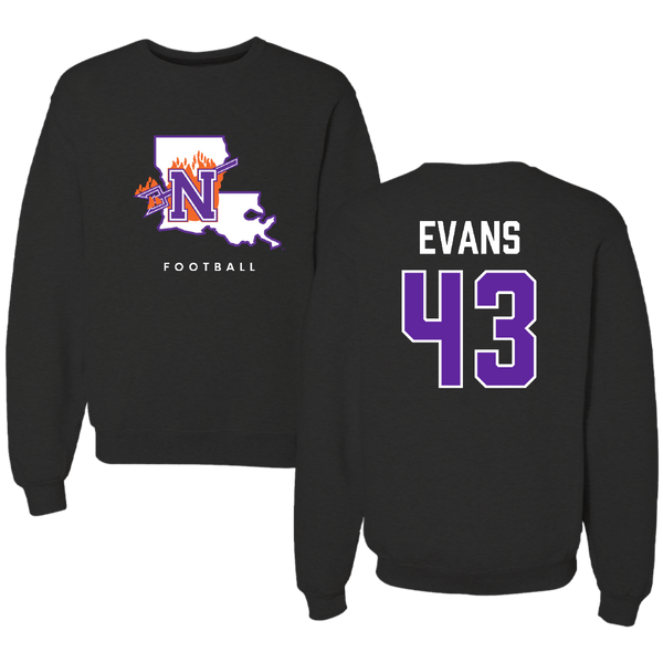 Northwestern State University Football Black Block Crewneck - #43 Cooper Evans