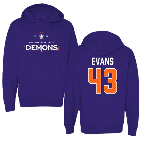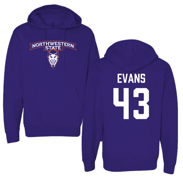 Northwestern State University Football Purple Hoodie - #43 Cooper Evans