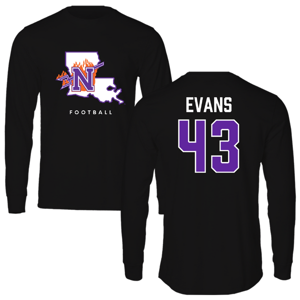 Northwestern State University Football Black Block Long Sleeve - #43 Cooper Evans