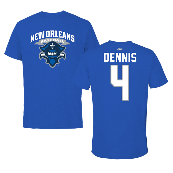 University of New Orleans Baseball Blue General Tee - #4 Cortez Dennis