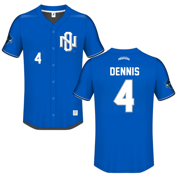 University of New Orleans Baseball Blue Jersey Tee - #4 Cortez Dennis