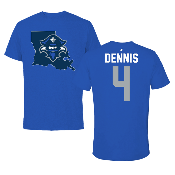 University of New Orleans Baseball Blue State Tee - #4 Cortez Dennis
