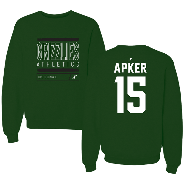 Adams State University Baseball Forest Green Dominate Crewneck - #15 Cory Apker