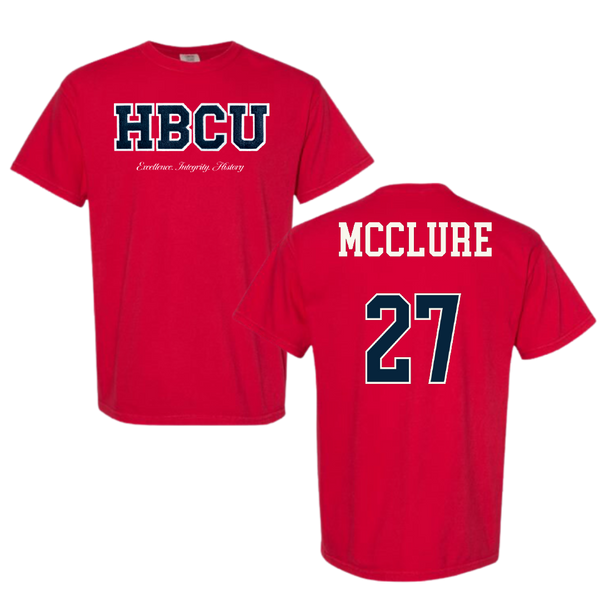 Howard University Soccer (W) Red HBCU Varsity Comfort Colors Tee - #27 Courtney McClure