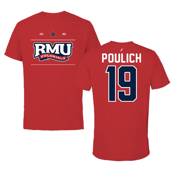 Robert Morris University Softball Red General Tee - #19 Courtney Poulich