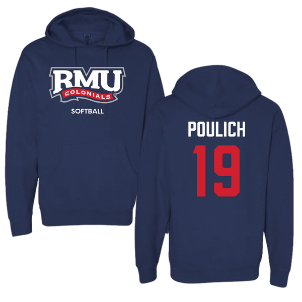 Robert Morris University Softball Navy Hoodie - #19 Courtney Poulich