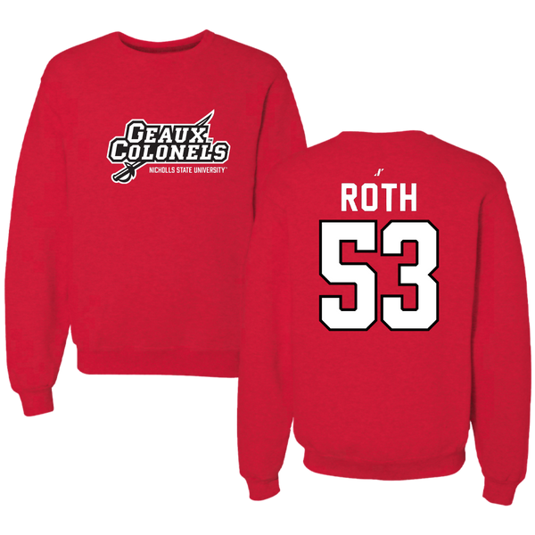 Nicholls State University Football Red General Crewneck - #53 Craig Roth
