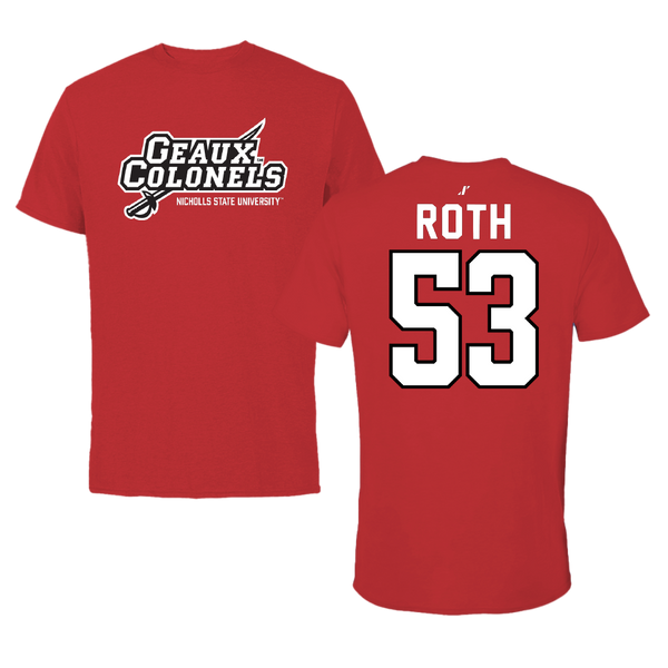 Nicholls State University Football Red Tee - #53 Craig Roth
