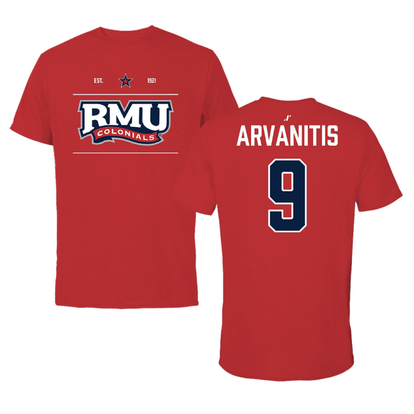 Robert Morris University Basketball (M) Red Colonials Tee - #9 Cyril Arvanitis