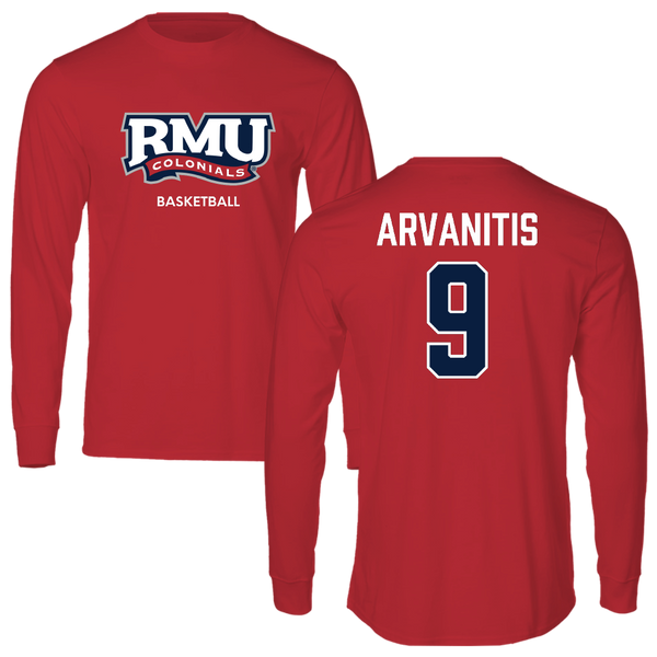 Robert Morris University Basketball (M) Red Long Sleeve - #9 Cyril Arvanitis