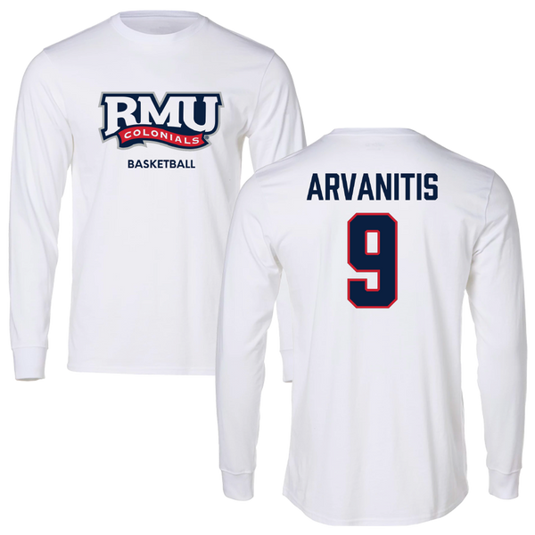 Robert Morris University Basketball (M) White Classic Long Sleeve - #9 Cyril Arvanitis