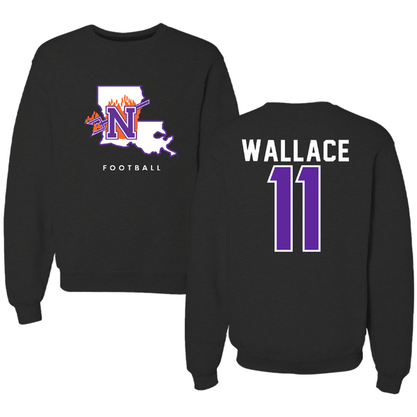 Northwestern State University Football Black Block Crewneck - #11 Dane Wallace