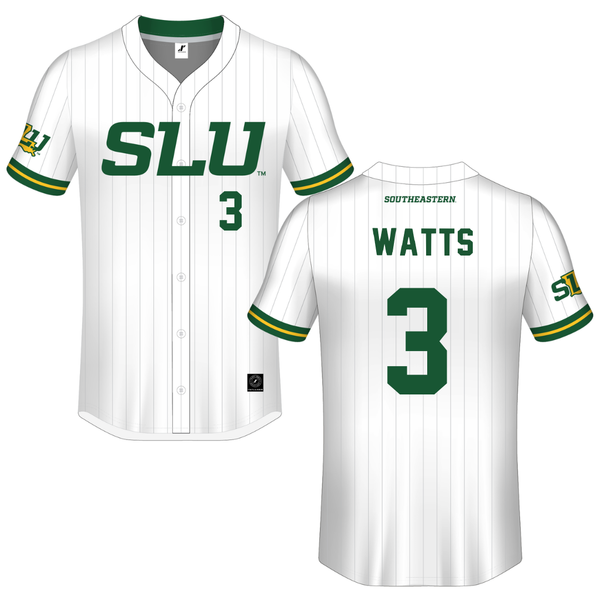 Southeastern Louisiana University White Pinstripe Button-Down Jersey - #3 Dane Watts