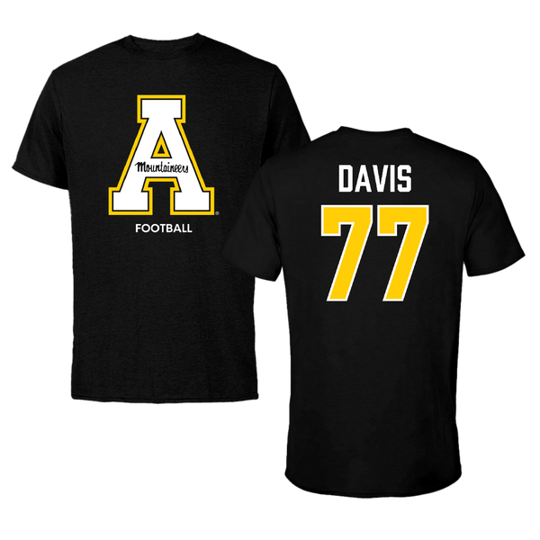 Appalachian State University Football Black Tee - #77 Daniel Davis