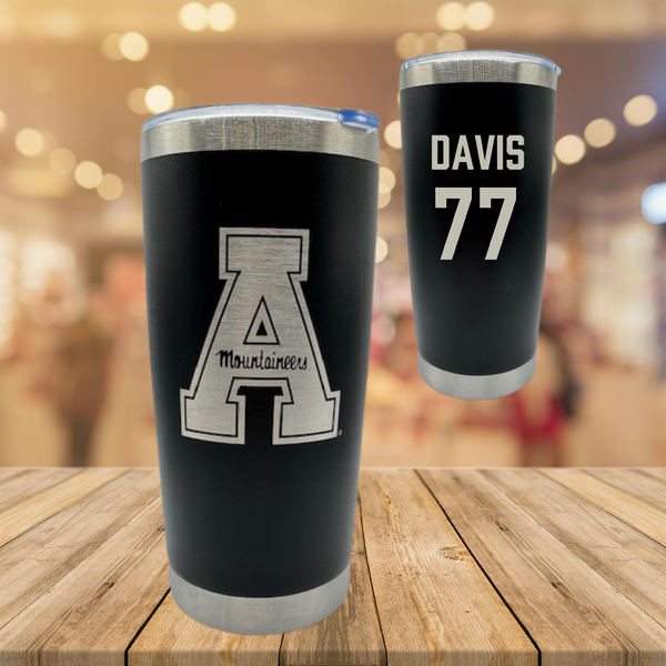 Appalachian State University Football Black Stainless Steel Tumbler - #77 Daniel Davis