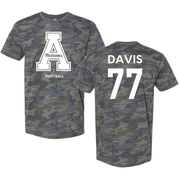 Appalachian State University Football Vintage Camo Tee - #77 Daniel Davis