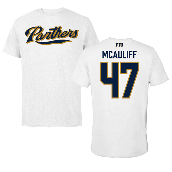 Florida International University Baseball White Tee - #47 Daniel McAuliff