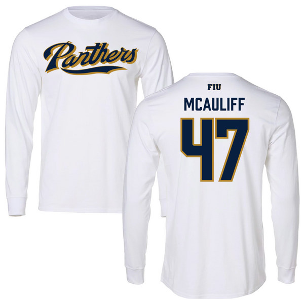 Florida International University Baseball White Panthers Long Sleeve - #47 Daniel McAuliff