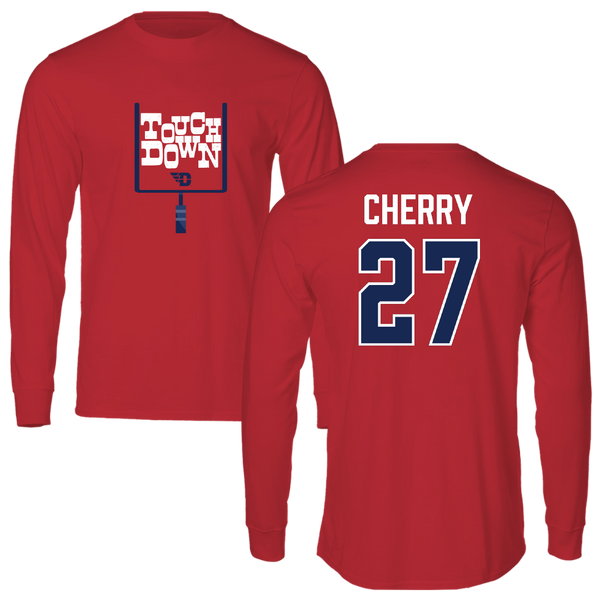 University of Dayton Football Red Touchdown Long Sleeve - #27 Darius Cherry