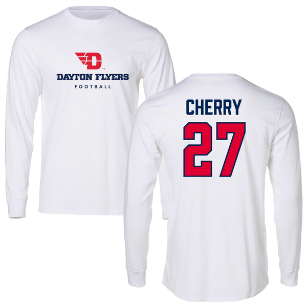 University of Dayton Football White Long Sleeve - #27 Darius Cherry