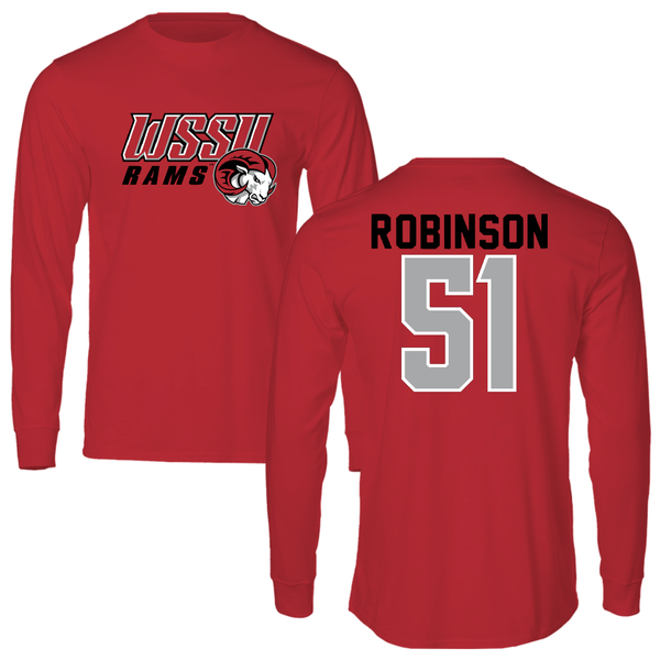 Winston-Salem State University Football Red Block Long Sleeve - #51 Darius Robinson
