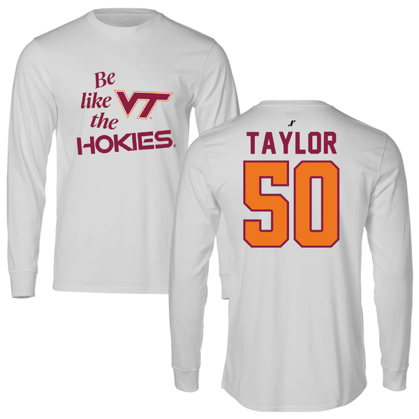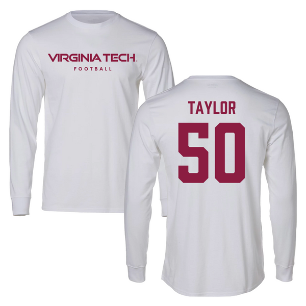Virginia Tech Football White Classic Long Sleeve - #50 Darius Taylor