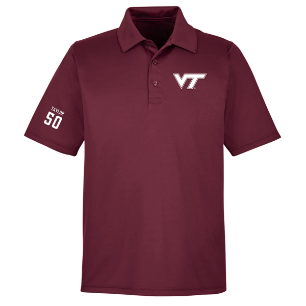Virginia Tech Football Maroon Polo - #50 Darius Taylor