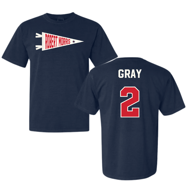 Robert Morris University Soccer Navy Pennant Comfort Colors Tee - #2 Darren Gray