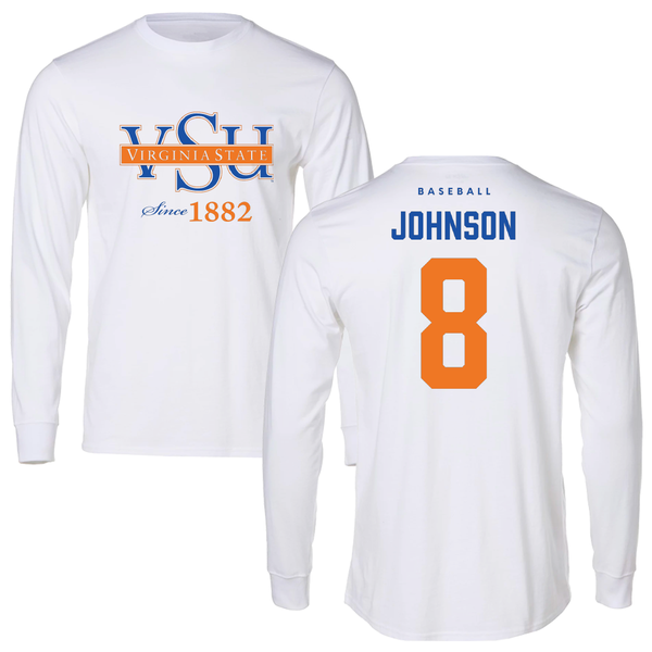 Virginia State University Baseball White Long Sleeve - #8 David Johnson