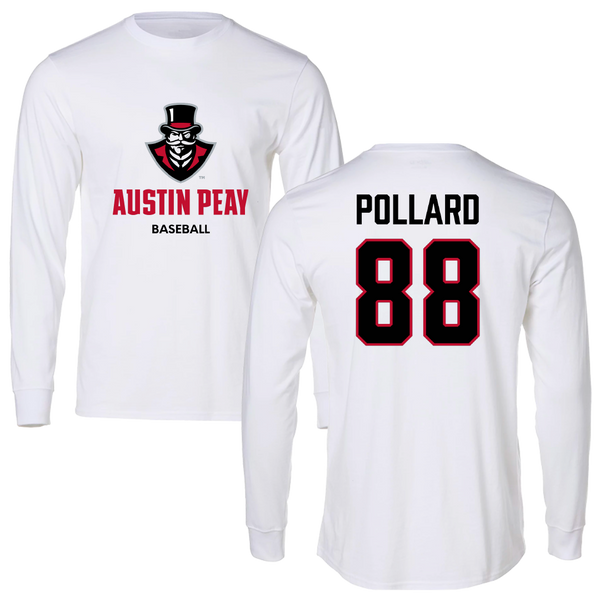 Austin Peay State University Baseball White Long Sleeve - #88 Davin Pollard
