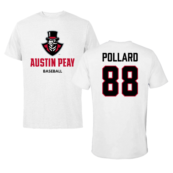 Austin Peay State University Baseball White Tee - #88 Davin Pollard