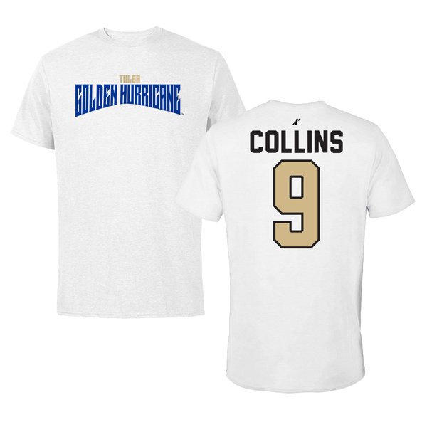 The University of Tulsa Football White Classic Performance Tee - #9 Dax Collins
