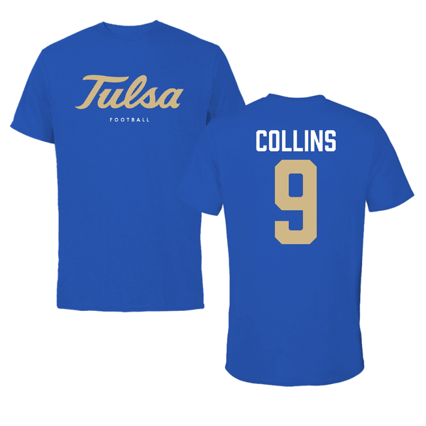 The University of Tulsa Football Blue Touchdown Tee - #9 Dax Collins