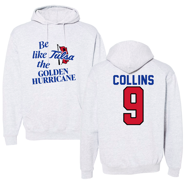 The University of Tulsa Football Light Gray Be Like Us Hoodie - #9 Dax Collins