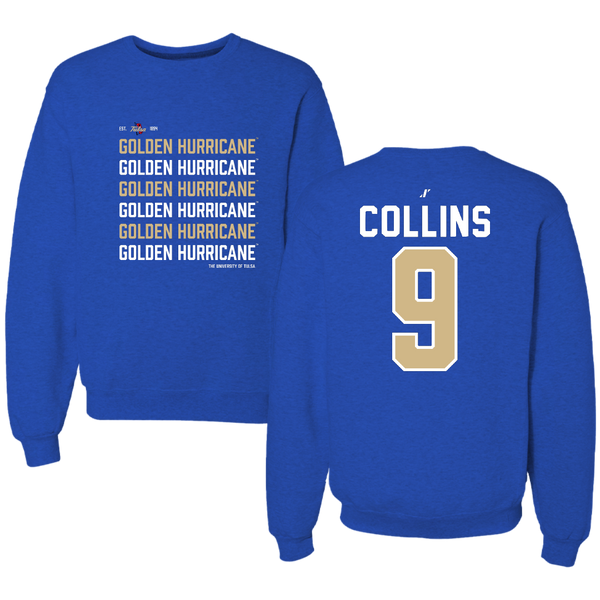 The University of Tulsa Football Blue Touchdown Crewneck - #9 Dax Collins