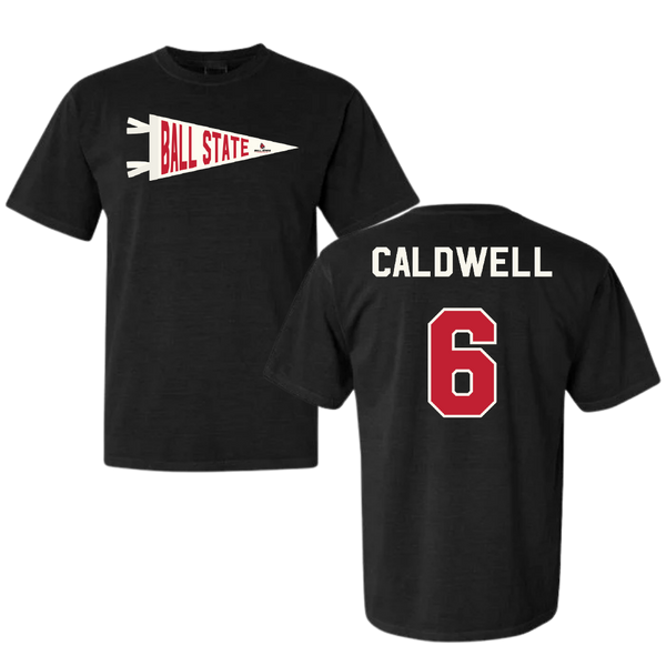 Ball State University Soccer Black Pennant Comfort Colors Tee - #6 Delaney Caldwell