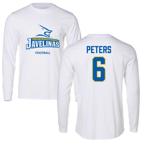 Texas A&M University-Kingsville Football White Long Sleeve - #6 De'Marcus Peters