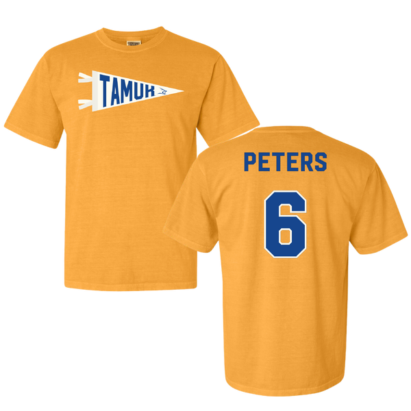 Texas A&M University-Kingsville Football Gold Pennant Comfort Colors Tee - #6 De'Marcus Peters