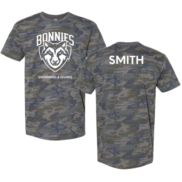 St. Bonaventure University Swimming & Diving Vintage Camo Tee - Denton Smith