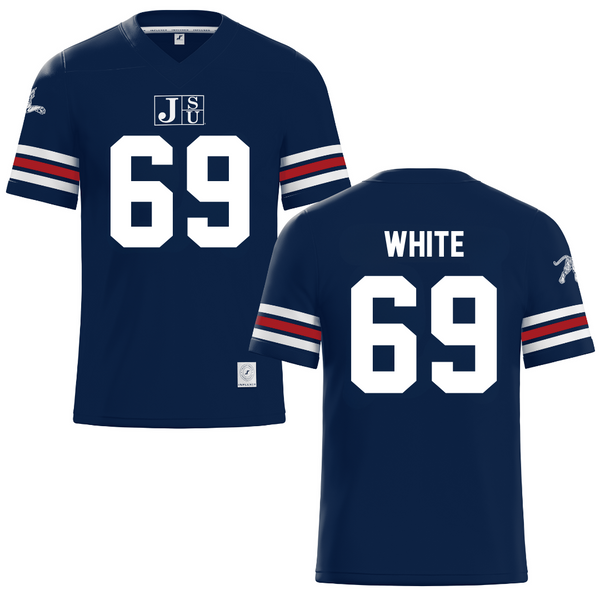 Jackson State University Navy Football Jersey - #69 Dequarious White